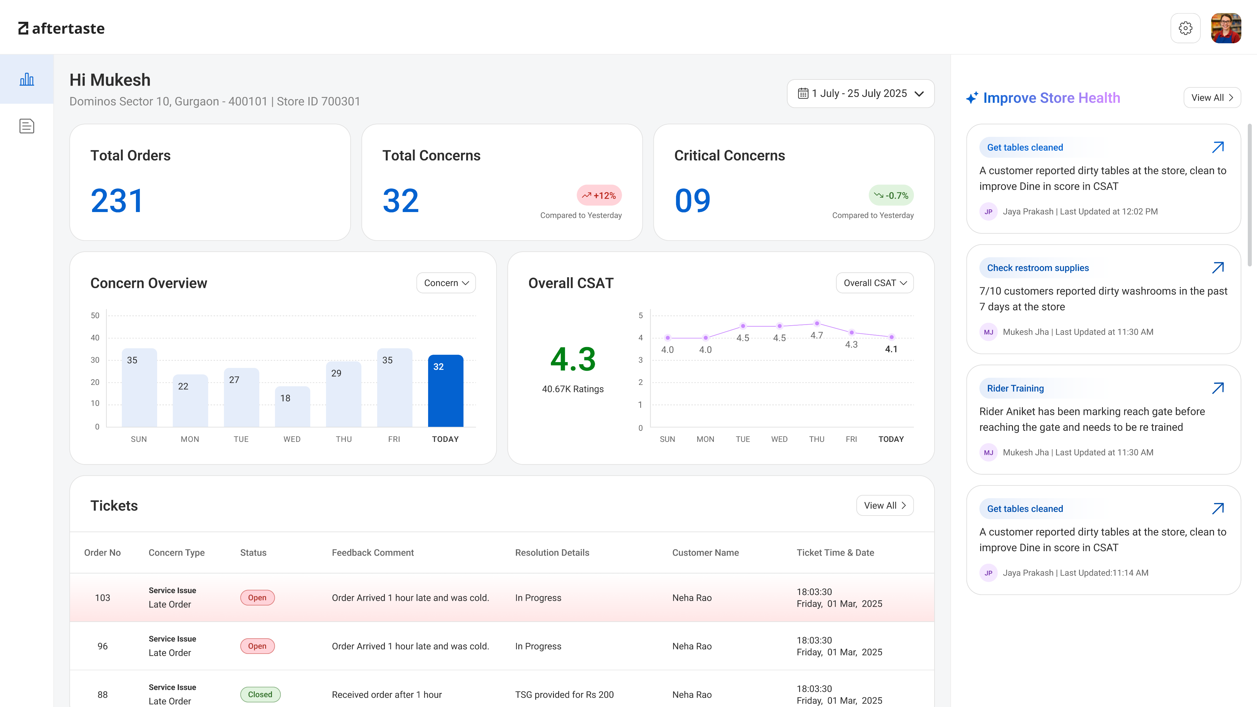 Concerns no longer ended at resolution. A Store Health action layer converted recurring issues into trackable improvement tasks, ensuring learnings translated into operational change.