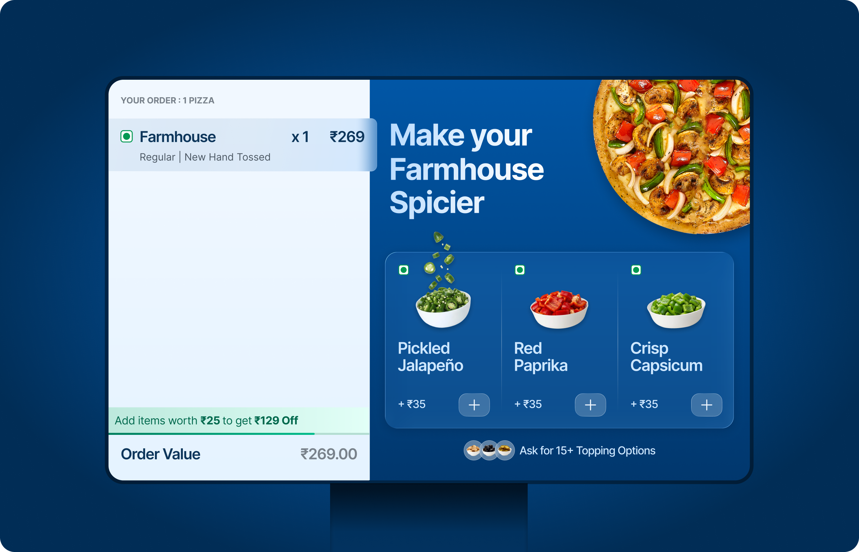 By looking at our competitors, we identified an underutilised surface in Domino’s stores: the customer-facing POS screen, currently used for static ads. This screen had the potential to evolve from passive advertising into an active sales touchpoint.